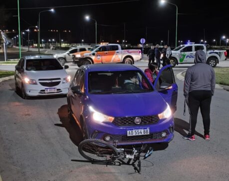 Ocurrió este domingo cerca de las 20:30 horas en la rotonda de Avenida Mosconi, acceso a barrio YPF. Un auto embistió a dos personas que se movilizaban en bicicleta. Resultaron con heridas leves
