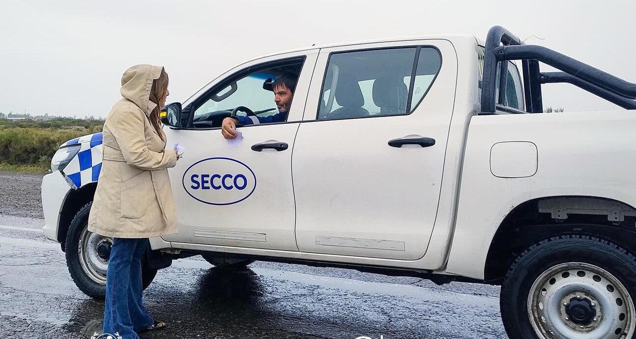 Salzotto entregando folletería e informando a los automovilistas
