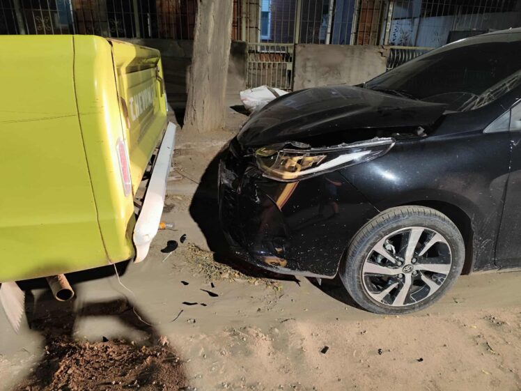 Se comentaron los vecinos, el Toyota “Yaris” estaba estacionado en la calle cuando se escuchó un fuerte golpe. Se lo impactó fuerte en la parte trasera y al moverlo, también fue dañado en la parte frontal contra una camioneta Chevrolet que no sufrió daños.