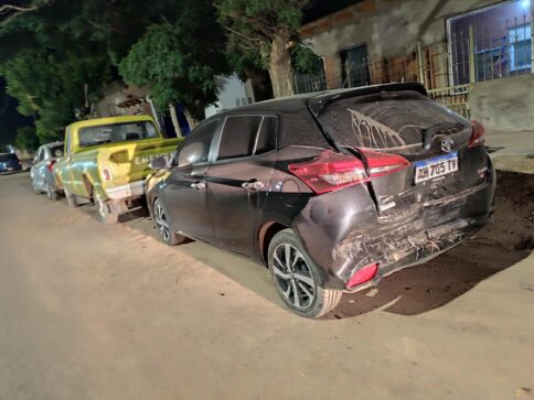 Se comentaron los vecinos, el Toyota “Yaris” estaba estacionado en la calle cuando se escuchó un fuerte golpe. Se lo impactó fuerte en la parte trasera y al moverlo, también fue dañado en la parte frontal contra una camioneta Chevrolet que no sufrió daños.