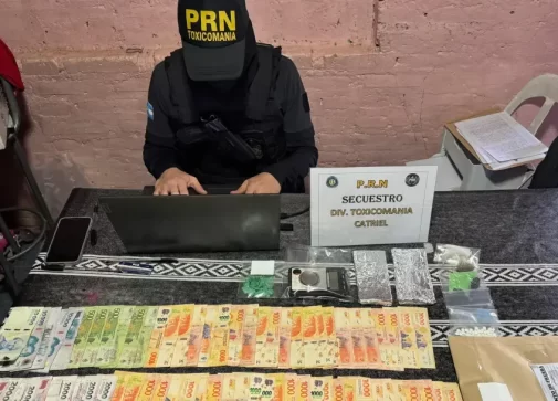 Fue así, que durante la diligencia de allanamientos del domicilio ubicado en el barrio Santa Cruz de la ciudad de Catriel que dieron como resultado la incautación de Cocaína fraccionada lista para su comercialización, Marihuana en estado fraccionada y plantas, 34 comprimidos positivos para metanfetaminas, 01 balanza de precisión, más de 100 mil pesos en efectivo, dos celulares, entre otros elementos.