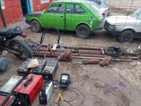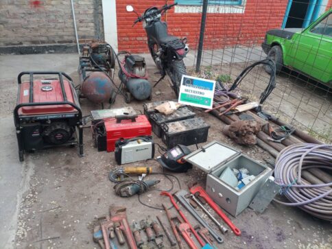Según informó el Comisario Cristian Vega (U9°), se procedió al secuestro de baterías varias, alicates industriales, amoladoras, discos de corte de amoladora, compresores, moto generador, rollos de cables subterráneos, alargues monofásicos, alargue toma trifásica, lámparas, taladro, barretas color naranja, llaves Stillson, engrasadora, llaves térmicas, engrasador color blanco, cables pre ensamblados con extremos de aluminio, pelador de cable color negro con rojo, fusibles de alta tensión, caños tubing 03 puntas de perforación de pozo, tijera de cortar hierro, soldadoras, grupo electrógeno, generador eléctrico, sierras, cables del tipo subterráneo, soldadoras, dos camionetas marcas Fiat y Toyota Hilux, calzados y celulares.