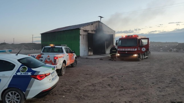 Este martes cerca de las 08:00 horas se registró el incendio en un galpón municipal donde se acopia cartón. Funciona a metros del vertedero en el Km134 de la ruta 151.