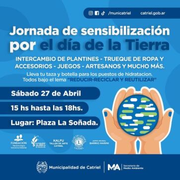 También Magraht se refirió a la actividad que se llevará a cabo este fin de semana. El sábado de 15 a 18 horas en barrio Marini se hablará sobre Medio Ambiente relacionado al Día de la Tierra que se celebró el pasado 22 de abril. Habrá charla sobre concientización y cuidado del ambiente con la participación de Instituciones y la Fundación Patrulla Ecológica.