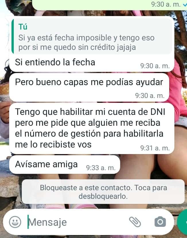 “Menos mal que dudé y llamé rápido a mi amigo y el celular daba apagado. Ahí me di cuenta que algo no estaba bien. La verdad que son muy hábiles y te envuelven con palabras. Me pedía más de 20 mil pesos y además yo no tenía eso en mi cuenta”, dijo la mujer a radio “Alas”