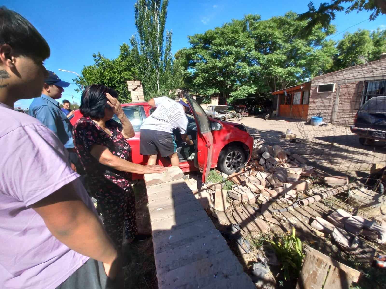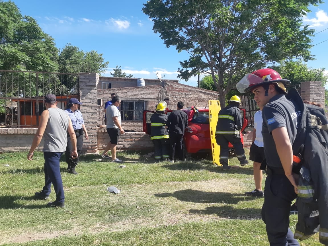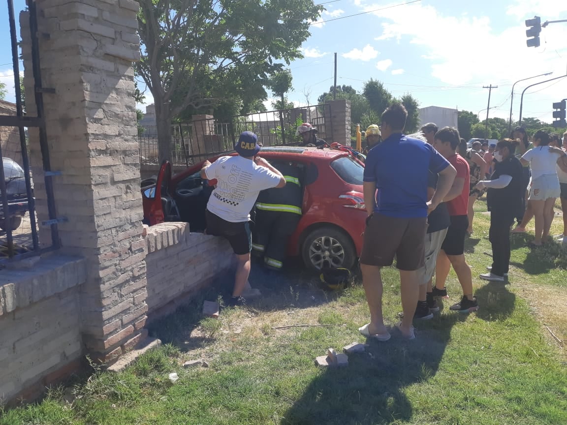 Según se pudo saber, la conductora habría sufrido una descompensación, y a pesar del stop del semáforo continuó por Irigoyen y el auto sin control terminó impactando contra el paredón de la vivienda, lo derribó y prácticamente llegó hasta el patio de la casa de un conocido vecino en Irigoyen y Cacique Catriel.