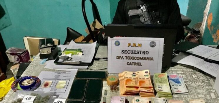 La Policía Río Negro secuestró estupefacientes, municiones, dinero en efectivo y celulares, durante una allanamiento realizado por le División de Toxicomanía de Catriel.
