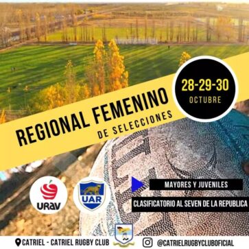 El 28, 29 y 30 de Octubre se jugará el Torneo regional de seleccionados femeninos en la ciudad de Catriel, siendo las instalaciones del Catriel Rugby las instalaciones elegidas para tal cita.