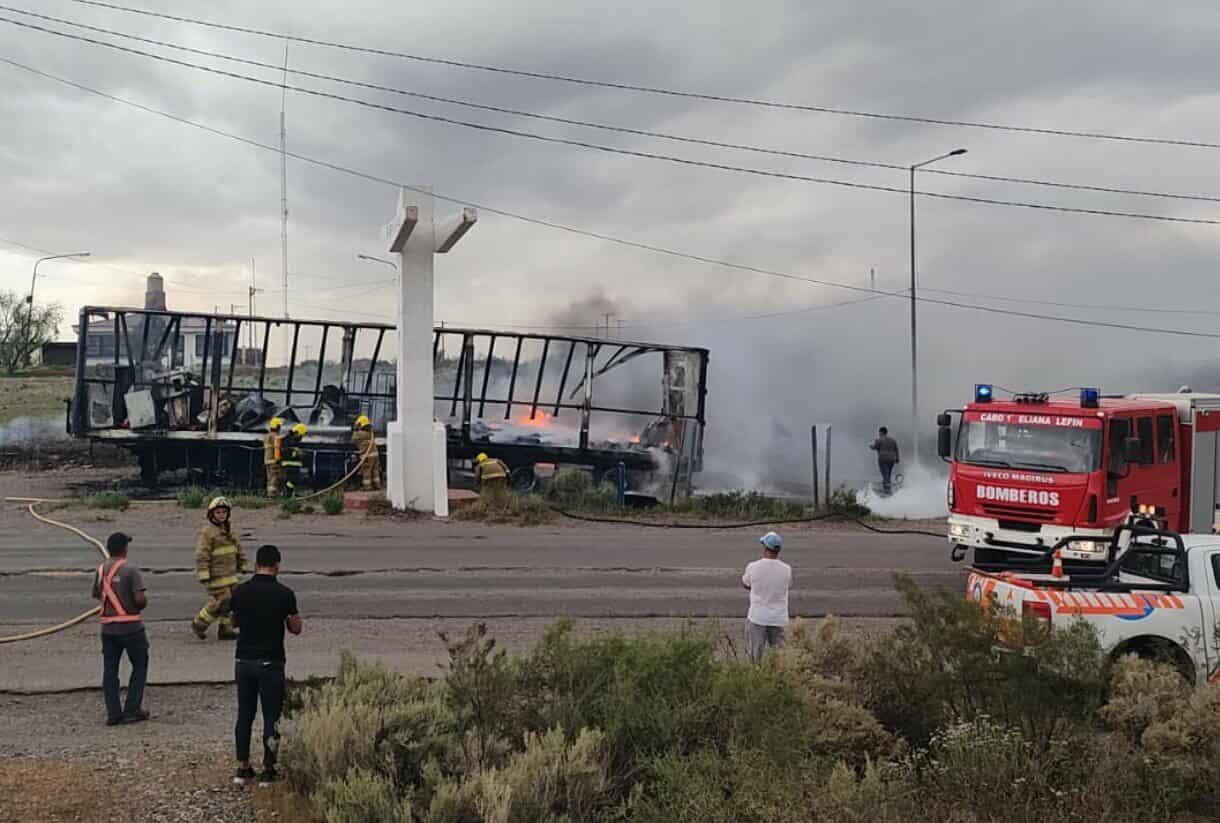Un camión cargado con electrodomésticos se incendió en la zona de Puente que une La Pampa y Río Negro (Ruta 151- Km 150)). Se desconoce cómo se inició el siniestro. El camionero sufrió una crisis y fue trasladado al hospital Catriel.