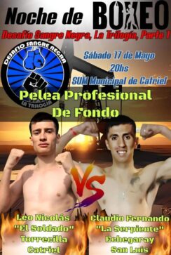 Este sábado 17 de mayo Catriel será sede de lo mejor del boxeo. Se presenta en la localidad, “Trilogía de Boxeo-Sangre Negra”, Primera parte.