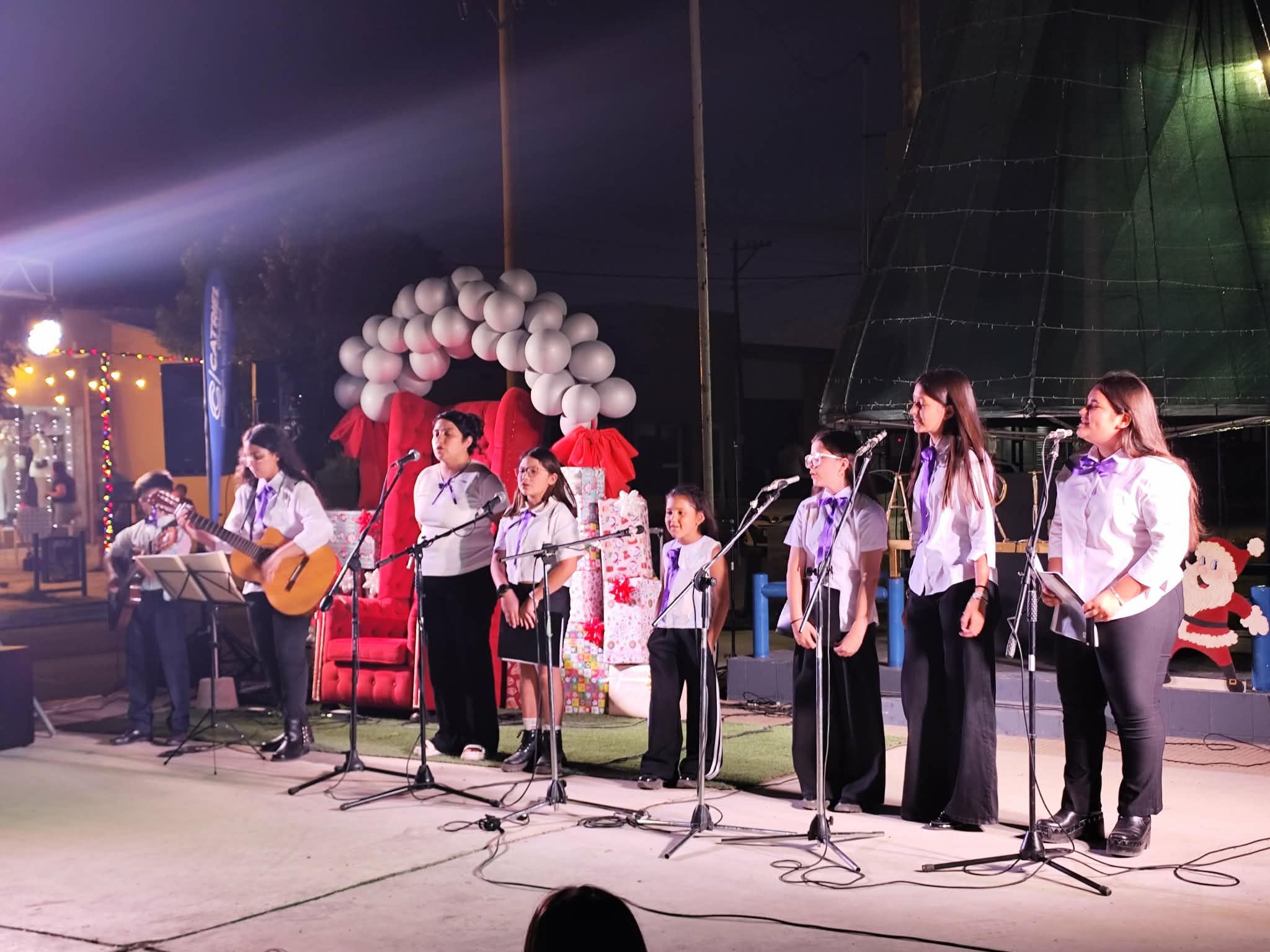 Villancicos en vivo, y la representación de un baile personificado del pesebre a cargo de los niños y niñas de catequesis de la Parroquia Cristo Obrero. Luego, tuvieron lugar las palabras y la bendición del Cura PárrocoTémer Mukled y un mensaje de paz, amor, esperanza y unión familiar de parte de la Intendenta Daniela Salzotto para toda la comunidad.