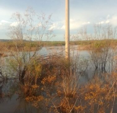 El corte de servicio es general, y luego de recorrer las instalaciones, las cuadrillas de EdERSA confirmaron que el problema se produjo del otro lado del río, en zona pampeana, que se encuentra totalmente anegada, como puede apreciarse en la imagen.