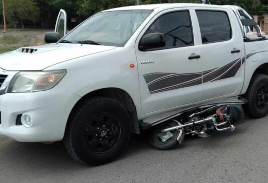 Ocurrió este sábado cerca de las 11:00 horas en calle Irigoyen y Cacique Catriel cuando una camioneta Toyota “Hilux” embistió a una motociclista.