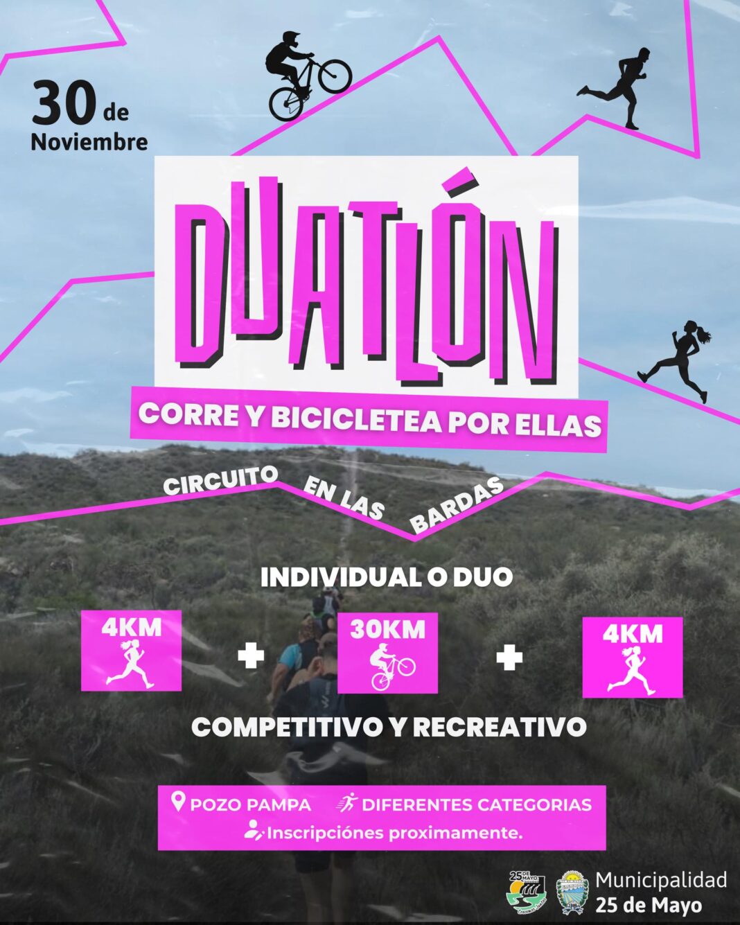 25 de Mayo-La adrenalina regresa a las bardas de 25 de Mayo con una nueva edición del Duatlón “Corre y Bicicletea por Ellas”, un evento que combina deporte, naturaleza y compromiso social.