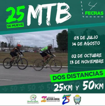 El próximo 13 de noviembre se disputará la 4° y última fecha del campeonato de MTB «25 se Mueve», que organiza la Dirección de Deportes de la Municipalidad de 25 de Mayo. De esta manera el evento llegará a su fin con este formato campeonato coronando a los máximos ganadores por categoría.