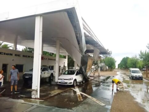 Las fuertes ráfagas de viento, acompañadas por lluvia, registradas en la tarde de ayer en la zona de La Humada provocaron la caída del techo de la estación de servicios municipal ubicada sobre el acceso de la localidad. Parte de la estructura cayó sobre el auto de un turista y le rompió la luneta trasera. No hubo heridos ni otros daños de consideración reportados a la policía.
