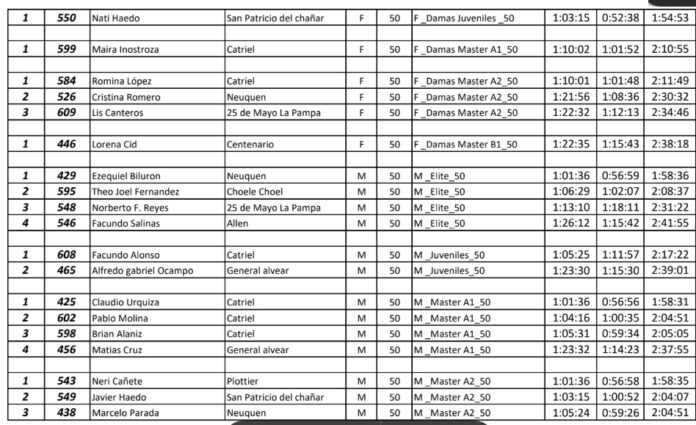 Mientras destacable fue también en rama femenina, Romi López obtuvo un destacado 2° puesto en la General, confirmando el alto nivel de las competidoras locales.
