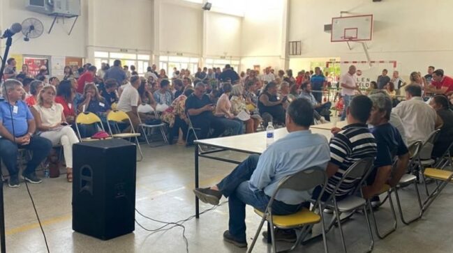 La calurosa reunión, dicho en más de un sentido, se desarrolló en la Escuela 30 de Viedma y fue presidida por el ex intendente de Bariloche, Marcelo Cascón.
