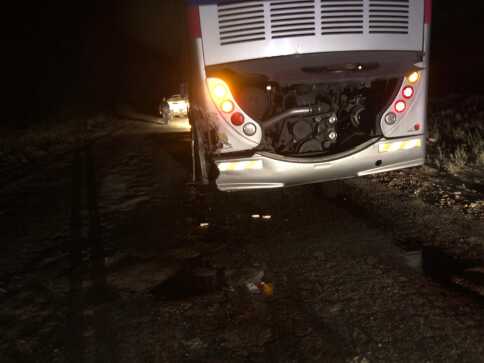 Se trata de un colectivo de larga distancia «Andesmar» conducido por Sergio Antolín Olmedo, quién relató que “una camioneta había impactado en la parte trasera del autobús”.
