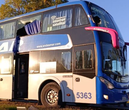 La unidad había pasado previamente por la región, trasladando pasajeros provenientes de Catriel y 25 de Mayo. Sin embargo, antes de arribar a destino, el colectivo se vio involucrado en un siniestro vial al colisionar con un camión y, posteriormente, impactar contra un poste, el cual terminó incrustándose en uno de los laterales del vehículo.