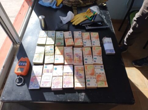 Durante la requisa del auto, se constató que en la parte trasera transportaban costillares de carne sin las medidas de sanidad reglamentarias. En tanto, fue hallada una mochila con la suma de $1.580.460,00 de dinero en efectivo y entre las butacas delanteras un arma de fuego.
