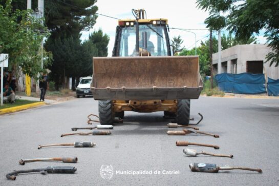 En el marco del cumplimiento de la Ordenanza Municipal N° 080/18 que prohíbe la circulación en la vía pública de motocicletas que tengan incorporados escapes libres, modificados los de fábrica o posean cualquier dispositivo que provoque explosiones causando ruidos molestos se realizó, en horas de la mañana, la compactación de caños de escapes. Los mismos fueron productos de secuestros realizados en operativos de control vehicular en la ciudad.