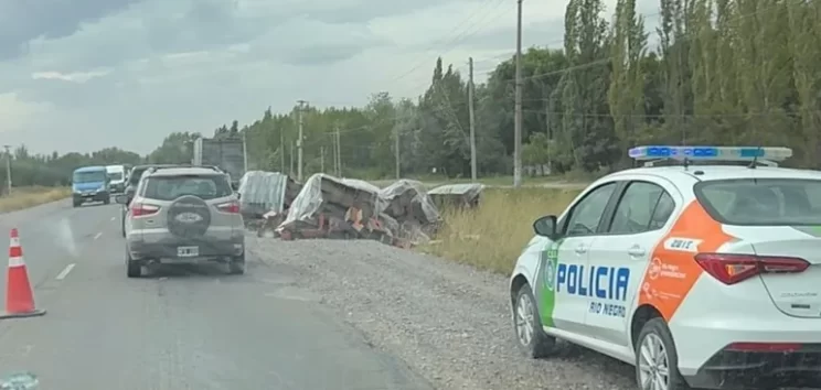 El viernes pasado, un grave siniestro vial se registró por la mañana sobre la Ruta Nacional 22, a la altura de Allen, cuando un camión tipo tolva que transportaba peras sufrió la apertura de su compuerta y terminó desparramando gran parte de la carga sobre la calzada. Como consecuencia directa del hecho, una camioneta Renault Oroch protagonizó un vuelco, generando una interrupción total del tránsito y un importante despliegue de los servicios de emergencia.