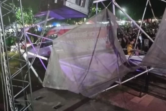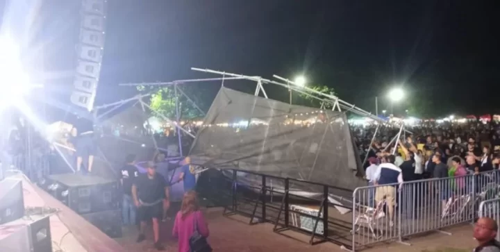 Más allá de los pronósticos, que desde hacía varios días marcaban la posibilidad de tormentas fuertes para el sur santafesino, desde la organización decidieron seguir sosteniendo esta celebración tal como estaba prevista, ya que contaban con las estructuras para afrontar posibles precipitaciones. Sin embargo, las ráfagas de viento, que llegaron a los 60 kh/h terminaron afectándola y provocando el derrumbe.