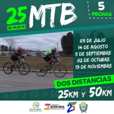 Este 2 de octubre, se correrá la 3er fecha del MTB, organizado por la Dirección de Deportes de la Municipalidad de 25 de Mayo. Lo mejor del Mountain Bike se reactiva luego del parate por cuestiones climáticas y distintas festividades locales. (infosports.com.ar)