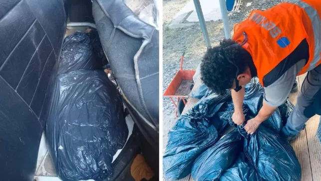 Se podían observar las bolsas desde la parte inferior del vehículo, sobre los amortiguadores de las ruedas. Según se detalló, el conductor trasladaba 130 kilos de carne con hueso.