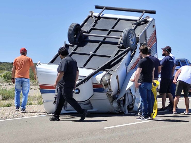 Volvían de Las Grutas y una ráfaga de viento les tumbó la casilla
