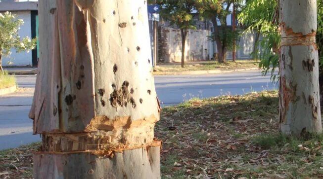 Desde el Municipio local detectaron tras denuncia de vecinos, cortes intencionales en la corteza de varios eucaliptos, los cuales fueron colocados por pioneros de la ciudad, entre ellos Julio Neto y Don Speziale.