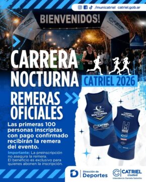 La ciudad de Catriel comienza a palpitar uno de los eventos deportivos más convocantes del calendario local: la Carrera Nocturna Catriel 2026, que ya tiene fecha confirmada y novedades para los corredores de la región.